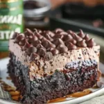 Dive into decadence with this Baileys Chocolate Poke Cake! Rich chocolate cake soaked in Baileys-infused milk, topped with a fluffy Baileys whipped cream and chocolate drizzle.