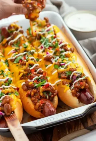 Embrace the ultimate comfort food with these Baked Chili Dogs, a dish that turns any gathering into a festive occasion! Packed with homemade chili, melted cheese, and crunchy Fritos, these chili dogs are perfect for game day or a fun family dinner.