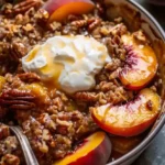 This Bourbon Pecan Peach Crisp combines ripe peaches with a splash of bourbon and a crunchy pecan topping for a dessert that’s as delightful as it is satisfying. It’s perfect for any season, capturing the essence of summer’s sweetness or the cozy warmth of autumn.