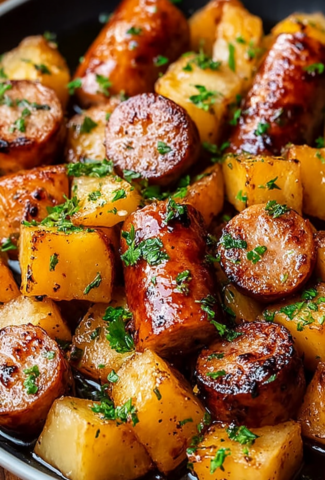 White Sweet Potato & Honey Garlic Sausages (Easy One-Pan Dinner!)