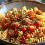 Experience the perfect blend of flavors with this Creamy Roasted Tomato Ricotta Pasta topped with Crispy Prosciutto. Each forkful delivers the tangy sweetness of roasted tomatoes, coupled with the creamy luxury of ricotta and the satisfying crunch of crispy prosciutto. Ideal for a comforting dinner or as a chic meal for your next gathering, this pasta dish is both easy to make and irresistibly delicious.
