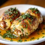 Once the chicken is cooked, remove the kitchen twine from each braciole. Taste the sauce and adjust seasoning with salt and pepper if needed. You can serve the braciole whole, or slice them into thick rounds to reveal the beautiful filling. Spoon the rich tomato sauce generously over the top. Garnish with extra fresh parsley or a final sprinkle of Parmesan cheese. Your masterpiece is ready to be enjoyed!