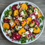 Planning a holiday feast or a special dinner party can be a delightful challenge. You want dishes that are not only delicious but also visually stunning, embodying the spirit of celebration. If you’re looking for a showstopper that perfectly balances savory, sweet, and tangy notes, the Festive Roasted Veggie Salad with Feta & Pomegranate Jewels is your answer. This isn’t just any side dish; it’s a vibrant tapestry of flavors and textures—the comforting earthiness of roasted vegetables mingling with the salty tang of feta, the delightful crunch of toasted walnuts, and the burst of juicy pomegranate seeds. It’s the kind of salad that garners compliments and disappears quickly from the table, making it an essential addition to your festive repertoire.