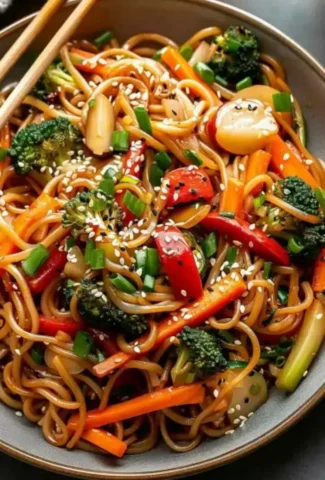 Dive into the colorful world of Homemade Vegetable Lo Mein! This vibrant and nourishing dish is packed with crisp vegetables and tender noodles, all tossed in a delectably savory sauce.
