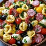 ThisSalami-Mozzarella Tortellini Pasta Saladis a delightful medley of flavors and textures, perfect for picnics, potlucks, or as a refreshing meal on a warm day. The tender tortellini pairs beautifully with the savory salami, creamy mozzarella, and crisp veggies, all tossed in a tangy Italian dressing.