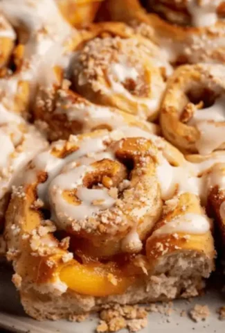 Start your day with a sweet twist with our Peach Cobbler Cinnamon Rolls, blending spiced, juicy peaches with soft, fluffy dough. These delightful rolls are perfect for brunch or a decadent treat, topped with creamy frosting.