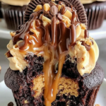 Irresistible Peanut Butter Chocolate Cupcakes with a rich, moist chocolate base, creamy peanut butter filling, and luscious frosting.