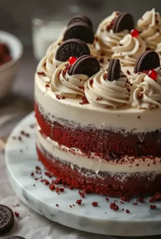 Prepare to fall in love with the delectable charm of our Red Velvet Oreo Cake—a perfect blend of rich red velvet and the classic crunch of Oreos. This dessert is not just a treat for the palate but also a feast for the eyes, making it a perfect addition to any celebration. Get ready to wow your guests with a cake that’s as delicious as it is stunning!
