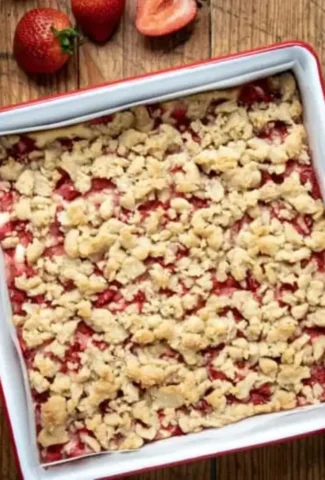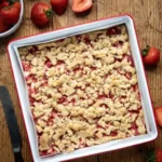 - Sprinkle the crumble topping evenly over the strawberries.