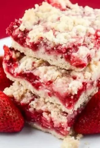 These easy Strawberry Crumb Bars, with a buttery crust, sweet strawberry filling, and crunchy butter crumb topping, make wonderful dessert bars. Whether you use juicy fresh berries or a bag from the freezer, they are perfect for an afternoon snack, party, or potluck year-round.
