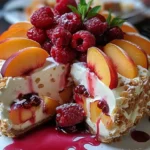 Indulge in the sun-kissed flavors of summer with this Peach and Raspberry Cheesecake Delight. It’s a creamy and fruity treat that blends a buttery biscuit crust, smooth cheesecake, and vibrant fruits, perfect for any summer gathering.