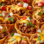Taco Ranch Bites are the ultimate party appetizer — crispy, cheesy phyllo cups filled with taco-seasoned beef and ranch-infused cheddar. They’re quick to make, crowd-pleasing, and perfect for game day, gatherings, or family fun.